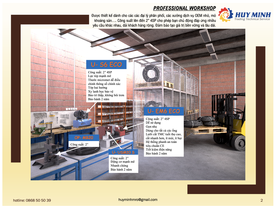 PROFESSIONAL WORKSHOP: Được thiết kế chuyên dụng cho các các các xưởng dịch vụ OEM nhỏ, các mỏ khai khoáng… Công suất tóp lên đến 2” 6 lớp bố kẽm cho phép