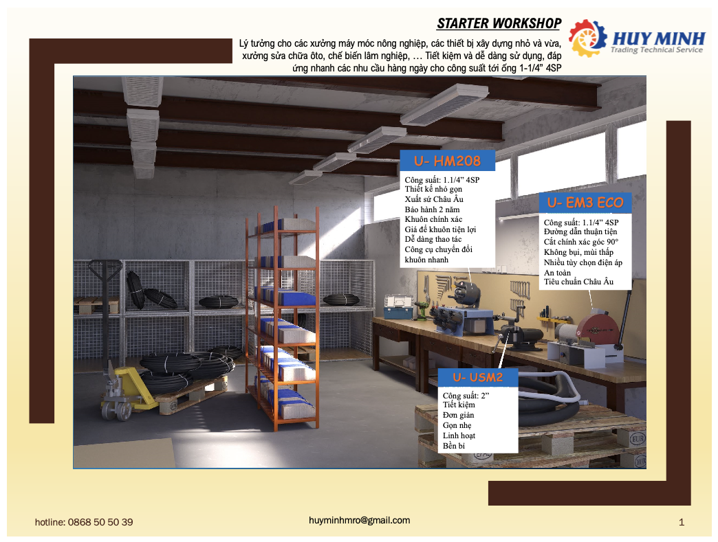 STARTER WORKSHOP: Lý tưởng cho các xưởng máy móc nông nghiệp, các thiết bị xây dựng nhỏ và vừa, xưởng sửa chữa ôto, … Tiết kiệm và dễ dàng sử dụng, đáp ứng